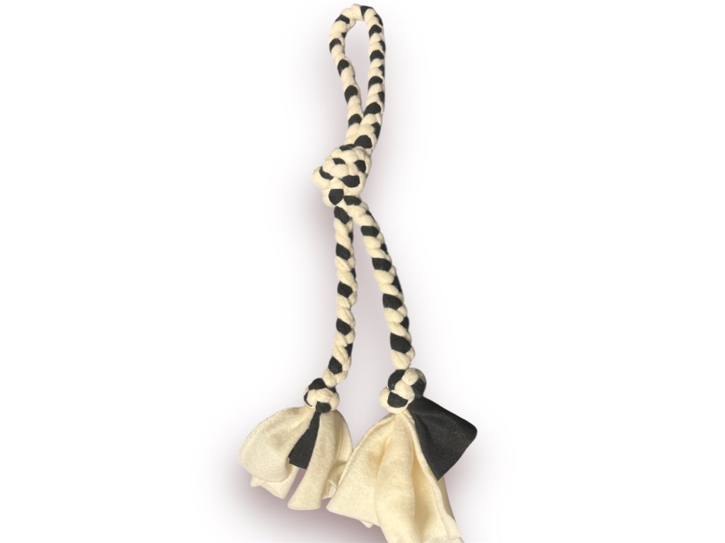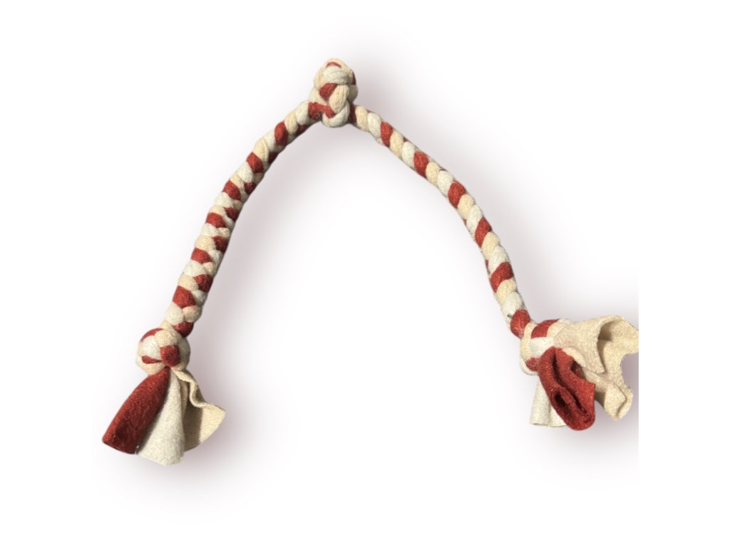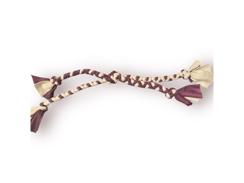 Hračka pro menší pejsky. Ručně pletená hračka vyrobená z jemného fleece materiálu, skvělá přetahovací hračka, hračku lze využít i k výcviku. Každý kousek je originál, různé barvy dle aktuální dostupnosti.